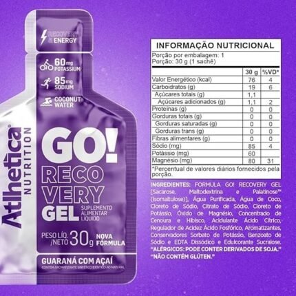 Go Energy Gel (10 Sachês) – Sabor Guaraná e Açai, Atlhetica Nutrition, Roxo