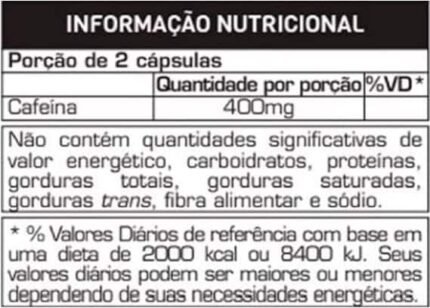 O FIRE BLACK traz em sua fórmula 400g de cafeína pura por porção, que auxilia no aumento do estado de