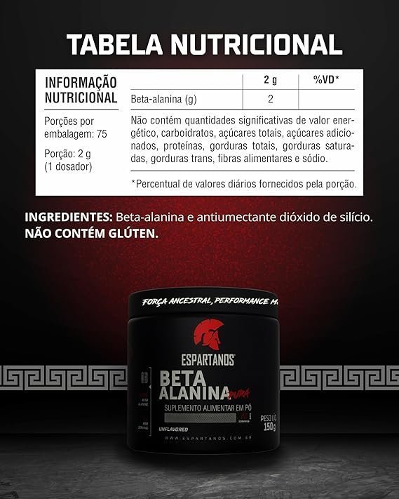 A Beta-Alanina Espartanos 150g é um suplemento de aminoácido puro que auxilia no aumento da resistência muscular e na melhora do desempenho físico. Ideal para treinos intensos, reduz a fadiga e contribui para ganhos consistentes em força e performance