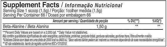 Beta Alanine (100g)  A maior capacidade de tolerância ao esforço anaeróbio e trabalho no limiar da fadiga, faz da beta-alanina uma ótima opção para um #TREINOCAVEIRA!       A Beta-Alanine Black Skull foi desenvolvida para que você possa atingir o máximo desempenho muscular! Isso porque, estudos apontam que esse aminoácido aumenta a quantidade de carnosina nos músculos, favorecendo a diminuição da fadiga e melhora da performance esportiva, especialmente em exercícios de alta intensidade.   BENEFÍCIOS BETA-ALANINE – BLACK SKULL: – 100% beta alanina – Melhora o desempenho físico;- Rico em aminoácidos;- Com 1,50g de beta alanina;- Mais energia durante os treinos;- Melhora a recuperação muscular;- Atividades com alta intensidade.