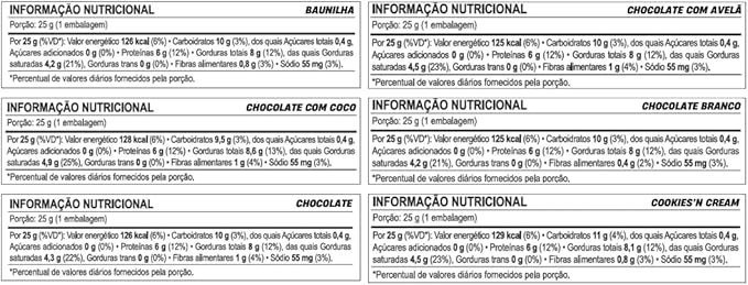 | Ingredientes | *VERIFICAR A PÁGINA DE DETALHES DE CADA UM DOS SABORES |