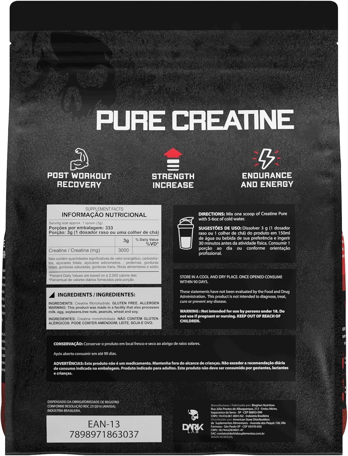 Creatina Pura Dark Lab 1kg, Monohidratada 100% de Pureza, Sem Sabor