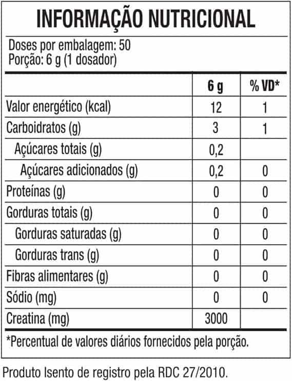 Sem Sabor: creatina monohidratada e maltodextrina.