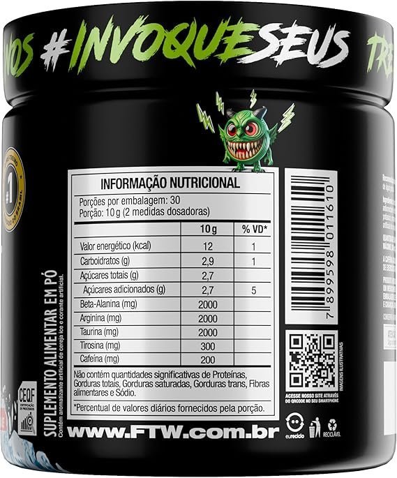 - Suplemento de confiança qualidade FTW Nutrition, produzido com ingredientes selecionados e dentro dos padrões da Anvisa.