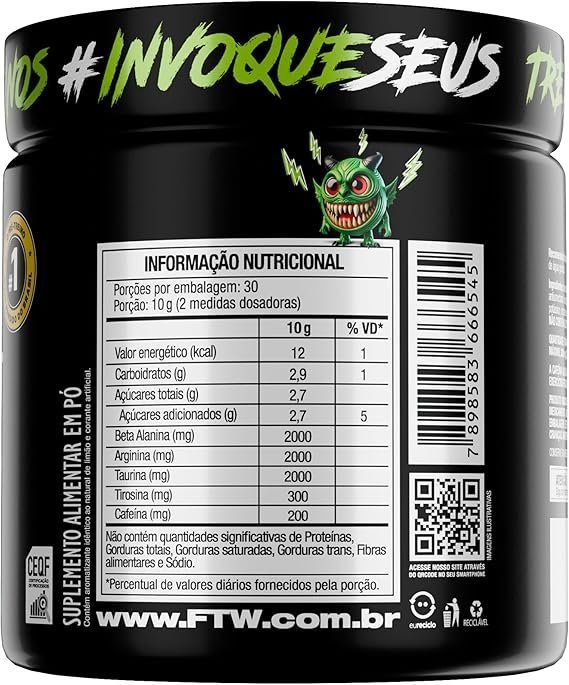 Seja o primeiro a avaliar “FTW Pré-Treino Diabo Verde em Pó com Cafeína, Aminoácidos Beta‑Alanina e Arginina para Treinos e Atividades Físicas – Pote 300 g (Limão)”