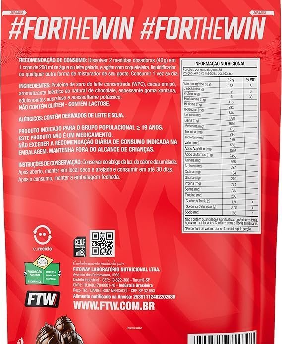 - Qualidade e confiança FTW – Produto sem glúten, com lactose natural do soro do leite, e dispensado de registro conforme RDC nº 240/2018 da Anvisa.