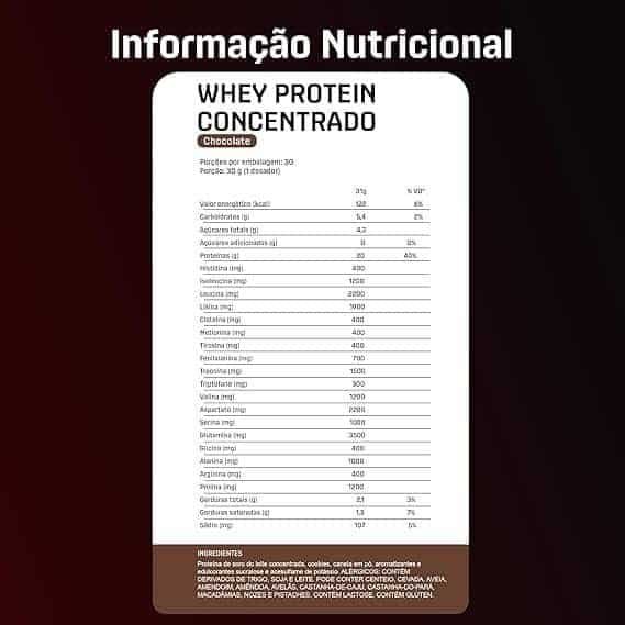 5g de BCAAs; 4,3g de glutamina e 2,5g de leucina, por dose. – O nome diz tudo: Whey Protein Concentrado 100% puro, com transparência total, do nome do produto à lista de ingredientes; – Não contém goma xantana, complexos vitamínicos à base de maltodextrina, espessantes, estabilizantes, conservantes ou qualquer outro ingrediente inferior; – Contém corantes 100% naturais. – Proteína moderna
