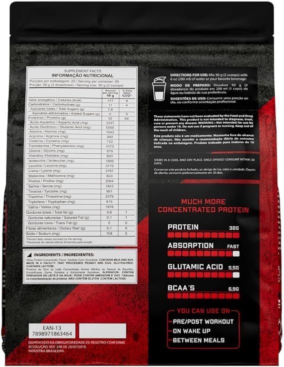 • SÍNTESE PROTEICA: Whey concentrado derivado do soro do leite que aumenta síntese proteica e promove ganho de massa muscular de forma eficiente